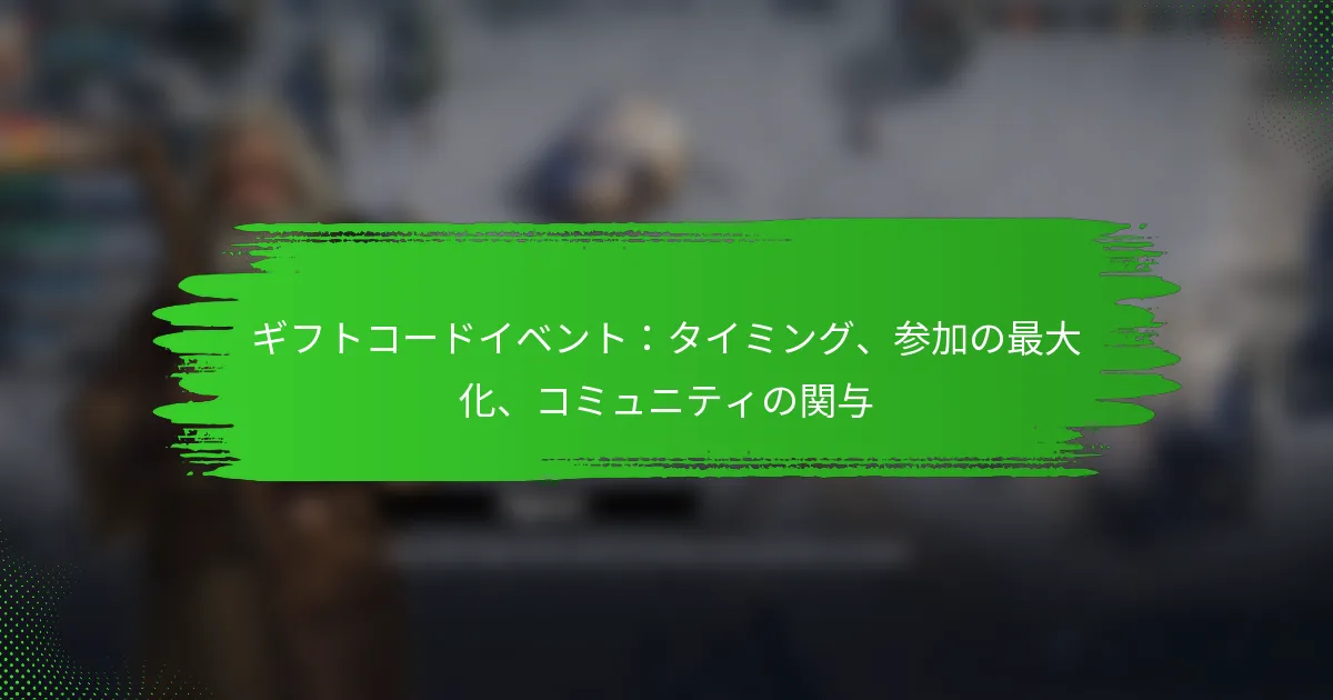 ギフトコードイベントは、参加者が割引や無料商品などの報酬のためにコードを獲得または利用できるエキサイティングなプロモーション活動です。通常、祝日や季節のセールに合わせて行われるこれらのイベントは、コミュニティの関与と参加を促進し、そのタイミングを把握することが重要です。参加を最大化するためには、魅力的な戦略を採用し、コミュニティ内で効果的に協力することが重要です。 ギフトコードイベントとは何か、どのように機能するのか? ギフトコードイベントは、参加者が割引や無料商品などのさまざまな報酬のためにコードを獲得または利用できるプロモーション活動です。これらのイベントは通常、コミュニティとの関与、特定のタスクの完了、またはコンテストへの参加を含み、これらのコードを解除します。 ギフトコードイベントの定義 ギフトコードイベントは、ユーザーが賞品や特典と引き換え可能なコードを取得できるようにする組織的なイニシアチブです。これらはブランド、インフルエンサー、またはコミュニティグループによって主催されることが多く、関与と忠誠心を高めることを目的としています。参加者は通常、コードを取得するための特定のガイドラインに従ったり、タスクを完了したりする必要があります。 これらのイベントはオンラインまたは対面で行われることがあり、ソーシャルメディアプラットフォームを活用してリーチと参加を最大化することがよくあります。発行されるコードは、イベントの目標や主催者によって異なる価値や種類があります。 利用可能なギフトコードの種類 割引コード:これにより、購入時に一定の割合または固定額の割引が提供されます。 無料商品コード:これにより、参加者は無料で商品を請求できます。 限定アクセスコード:これにより、新しい商品やサービスへの早期または限定アクセスが付与されます。 ギフトカード:これらは将来の購入に使用でき、特定の価値を持つことが多いです。 各タイプのギフトコードは異なるプロモーション目的に役立ち、さまざまな顧客セグメントにアピールします。これらの種類を理解することで、参加者は自分の興味に合ったイベントを選ぶことができます。 ギフトコードイベントに参加するメリット ギフトコードイベントに参加することには、節約の機会、限定商品のアクセス、ブランドとの関与など、いくつかの利点があります。多くの参加者は、競争のスリルや貴重な報酬を獲得するチャンスを楽しんでいます。 さらに、これらのイベントはコミュニティの感覚を育むため、参加者はしばしば経験や戦略を共有します。この相互作用はブランドの忠誠心を高め、消費者とブランドの間に持続的な関係を築くことができます。 コミュニティの関与におけるギフトコードイベントの重要性 ギフトコードイベントは、参加者間の相互作用を促進することにより、コミュニティの関与において重要な役割を果たします。これらは、ユーザーがつながり、共有し、協力するためのプラットフォームを作り、活気あるコミュニティの雰囲気を育みます。 さらに、これらのイベントはブランドがオーディエンスから貴重なフィードバックや洞察を収集するのに役立ち、将来の提供を調整することができます。このように消費者と関与することで、ブランドの可視性と忠誠心が高まる可能性があります。 ギフトコードイベントを主催する一般的なプラットフォーム ギフトコードイベントを主催する人気のプラットフォームには、Instagram、Facebook、Twitterなどのソーシャルメディアサイトが含まれ、ブランドはターゲットオーディエンスに簡単にリーチできます。さらに、ゲームプラットフォームやコミュニティフォーラムも、ユーザーを効果的に引き付けるためにこれらのイベントを特集することがよくあります。 メールニュースレターや専用のプロモーションウェブサイトなど、他のプラットフォームもこれらのイベントの会場として機能します。各プラットフォームは独自の利点を提供するため、適切なものを選ぶことがイベントの成功と参加率に大きな影響を与える可能性があります。 ギフトコードイベントは通常いつ行われるのか? ギフトコードイベントは通常、特定の時期に行われ、祝日、季節のセール、またはプロモーションキャンペーンに合わせて行われます。これらのイベントはコミュニティの関与と参加を大幅に向上させる可能性があるため、そのタイミングを把握することが重要です。 ギフトコードイベントの月間スケジュール ギフトコードイベントは通常、年間を通じてスケジュールされており、特定の月が特に人気です。以下は、これらのイベントが通常行われる時期の一般的な概要です: