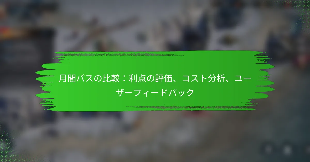 月額パスは、利便性やコスト削減を含むさまざまな利点をユーザーに提供し、公共交通機関やジムなどのサービスを定期的に利用するユーザーにとって魅力的です。しかし、これらのパスのコストと利点はサービスや場所によって大きく異なるため、慎重な評価が必要です。ユーザーのフィードバックは、満足度と懸念が混在していることが多く、決定を下す前に特典と潜在的な欠点の両方を理解することの重要性を強調しています。 月額パスの主な利点は何ですか? 月額パスは、利便性、コスト削減、柔軟性、独占特典、全体的な体験の向上など、さまざまな利点をユーザーに提供します。これらの利点は、公共交通機関、ジム、またはサブスクリプションプラットフォームなどのサービスを頻繁に利用するユーザーにとって魅力的な選択肢となります。 サービスへのアクセスの利便性 月額パスは、繰り返しの取引を必要とせずにサービスへのシームレスなアクセスを提供します。ユーザーは、特に日常的または週単位でサービスに依存している人々にとって、途切れのないアクセスを楽しむことができます。 この利便性は、毎回個別のチケットやパスを購入する手間を省き、時間と労力を節約します。たとえば、通勤者はパスをタップするだけでバスや電車に乗ることができ、日常のルーチンを効率化します。 単品購入に比べたコスト削減 月額パスを選ぶ最も説得力のある理由の1つは、コスト削減の可能性です。月額パスは、通常、単品チケットやパスを購入するよりも1回あたりの料金が低くなります。 たとえば、月額の交通パスは、同じ回数の旅行のために日々のチケットを購入するよりも約30-50%安くなることがあります。これにより、定期的に利用するユーザーは、時間の経過とともに簡単に節約を計算できます。 使用とオプションの柔軟性 月額パスは、通常、柔軟な使用オプションを提供し、ユーザーが制限なくさまざまなサービスを利用できるようにします。この柔軟性には、サービスプロバイダーによって異なるが、月内または特定の時間枠での無制限アクセスが含まれることがあります。 たとえば、月額パスを持つジム会員は、すべてのクラスや施設にアクセスでき、異なるトレーニングの好みやスケジュールに対応できます。ユーザーは、追加費用をかけることなく、自分のニーズに基づいて使用を調整できます。 独占特典とボーナス 多くの月額パスには、ユーザーにとって全体的な価値を高める独占特典が付いています。これには、追加サービスの割引、優先アクセス、または単品チケット購入者には提供されない特別プロモーションが含まれることがあります。 たとえば、月額交通パスは、地元の観光名所やレストランでの割引を提供し、ユーザーに交通手段以上の追加の利点を提供することがあります。これにより、投資を最大限に活用しようとする人々にとって、月額パスはさらに魅力的になります。 ユーザー体験の向上 月額パスを利用することで、全体的なユーザー体験が向上することが多く、頻繁な購入や計画に伴うストレスが軽減されます。ユーザーは、コストやチケットの可用性を心配することなく、サービスを楽しむことに集中できます。 さらに、多くのサービスプロバイダーは、月額パス保持者向けに専用のカスタマーサポートを提供しており、問題が迅速かつ効率的に解決されることを保証しています。このサポートレベルは、ユーザーの満足度と忠誠心を大幅に高めることができます。 月額パスのコストはどのように比較されますか? 月額パスのコストは、サービスの種類、場所、含まれる特典によって大きく異なります。これらの違いを理解することで、ユーザーは自分のニーズに最適なパスを選択するための情報に基づいた決定を下すことができます。 異なるパスの基本価格構造 月額パスには、提供される基本サービスを反映した基本価格があります。たとえば、大都市の公共交通パスは、カバレッジエリアや使用頻度に応じて、月額70ドルから150ドルの範囲であることがあります。 フィットネスセンターの会員は、基本アクセスのために月額約30ドルから始まることが多く、追加のアメニティを含むプレミアムオプションは100ドルを超えることがあります。各パスに含まれる内容を評価することは、全体的な価値を判断するために重要です。 隠れた手数料と追加コスト 多くの月額パスには、全体的なコストを膨らませる隠れた手数料が含まれています。たとえば、一部の交通パスは、ピーク時の旅行に追加料金を請求したり、特定のルートに対して追加の支払いを要求することがあります。