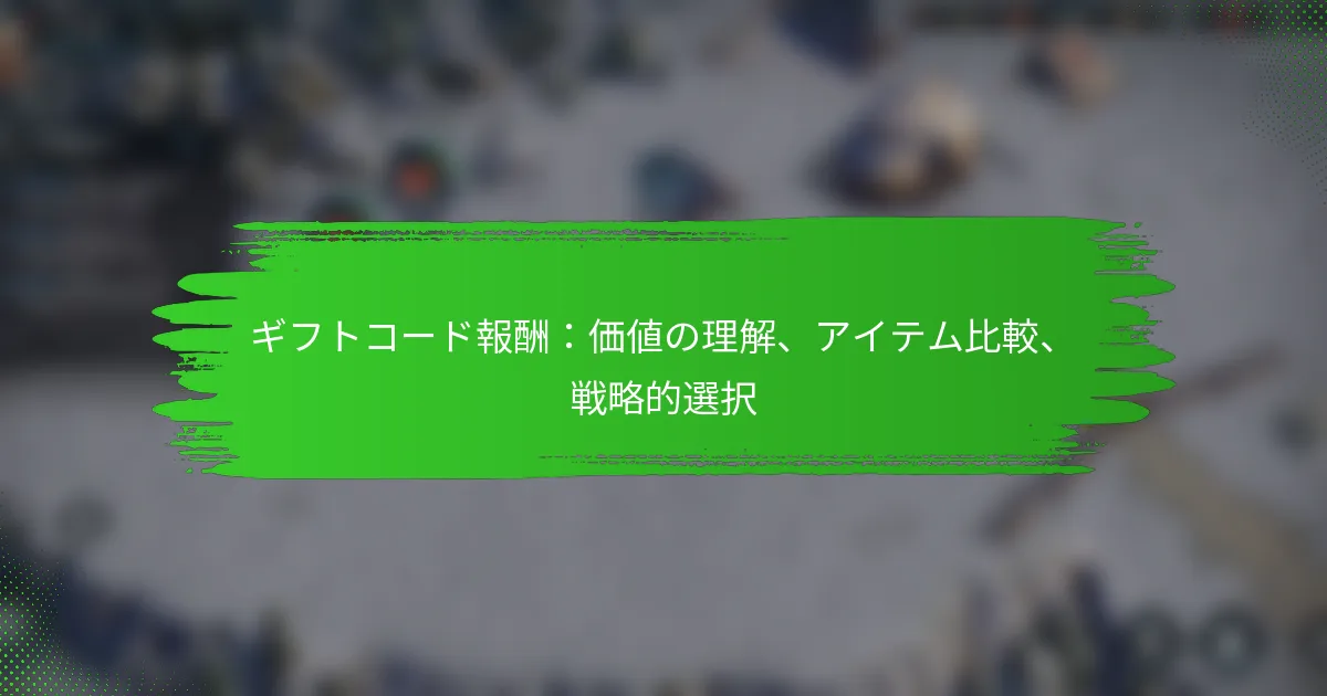 ギフトコードの報酬は、ユーザーに対してさまざまなプラットフォームで割引、無料アイテム、またはクレジットを提供するデジタルコードです。これらのコードの利点を最大限に活用するためには、使いやすさ、市場のトレンド、有効期限などの要素を考慮して、これらのコードの価値を評価することが重要です。ゲーム、ショッピング、ロイヤルティプログラムにおける最も効果的なコードを理解することで、情報に基づいた意思決定を行い、全体的な体験を向上させることができます。 ギフトコードの報酬とは何か、どのように機能するのか? ギフトコードの報酬は、ユーザーに対してさまざまなプラットフォームで割引、無料アイテム、またはクレジットを提供するデジタルコードです。これらは、ユーザーがチェックアウト時またはアカウント設定でコードを入力することで、約束された特典を受け取ることができます。 ギフトコードの報酬の定義と目的 ギフトコードの報酬は、ユーザーがブランドと関わるインセンティブとして機能し、顧客のロイヤルティを促進し、購入を奨励します。これらのコードは、プロモーション、ロイヤルティプログラム、または友人や家族からのギフトとして配布されることがあります。 主な目的は、製品やサービスと引き換え可能な具体的な報酬を提供することでユーザー体験を向上させ、ショッピングをより魅力的でコスト効果の高いものにすることです。 利用可能なギフトコードの種類 店舗特定コード:これらのコードは特定の小売業者やプラットフォームでのみ有効で、しばしば割引や無料配送を提供します。 ユニバーサルコード:これらは複数のプラットフォームで使用でき、ユーザーがどのように引き換えるかの柔軟性を提供します。 ギフトカード:特定の金額がプリロードされており、指定された店舗やオンラインで現金のように使用できます。 プロモコード:しばしば時間制限があり、特定のアイテムやカテゴリに対して割引を提供します。 ギフトコードの引き換え方法 ギフトコードの引き換えは通常、簡単なプロセスです。ユーザーは、小売業者のウェブサイトやアプリの指定されたエリアを見つける必要があり、通常は「コードを引き換える」または「ギフトカード」とラベル付けされています。 コードを入力した後、ユーザーは購入を完了する前に、割引またはクレジットが適用されたことを確認する必要があります。コードに関連する有効期限や使用制限を確認することが重要です。 ギフトコードの報酬を利用する利点 ギフトコードの報酬は、コスト削減、独占的な取引へのアクセス、新しい製品を金銭的リスクなしで試す能力など、いくつかの利点を提供します。ユーザーは、通常の価格では利用できない割引を楽しむことができます。 さらに、ギフトコードはユーザーのエンゲージメントと満足度を向上させ、ブランドからの価値と感謝の気持ちを提供します。また、友人や家族への思いやりのあるギフトとしても機能します。 ギフトコードを提供する一般的なプラットフォーム 多くの人気プラットフォームがギフトコードを提供しており、Amazon、Walmart、Targetなどの主要小売業者が含まれます。SteamやXboxなどのオンラインゲームプラットフォームも、ユーザー体験を向上させるために頻繁にギフトコードを提供しています。 さらに、NetflixやSpotifyなどのデジタルサービスも、ギフトコードを利用して新しい加入者を引き付け、既存の加入者を報いることがあります。ユーザーは、これらのプラットフォームでプロモーションオファーや特別イベントを定期的にチェックし、ギフトコードが提供される場合があります。 ギフトコードの価値を評価する方法は? ギフトコードの価値を評価するには、使いやすさ、市場のトレンド、有効期限などの要素に対してその潜在的な利点を評価することが含まれます。これらの要素を理解することで、ギフトコードを引き換えたり取引したりする際に情報に基づいた選択を行うことができます。 ギフトコードの価値を評価するための基準 ギフトコードの価値を評価する際には、引き換えプラットフォーム、利用可能なアイテムやサービスの種類、コードの額面などの要素を考慮してください。人気のプラットフォームのコードは、あまり知られていないサービスのコードよりも価値が高い場合があります。 もう一つの重要な基準は、ギフトコードの汎用性です。幅広い製品やサービスに使用できるコードは、特定のアイテムに制限されているコードよりも一般的に価値が高いです。また、コードに適用される可能性のある制限や制約を確認してください。