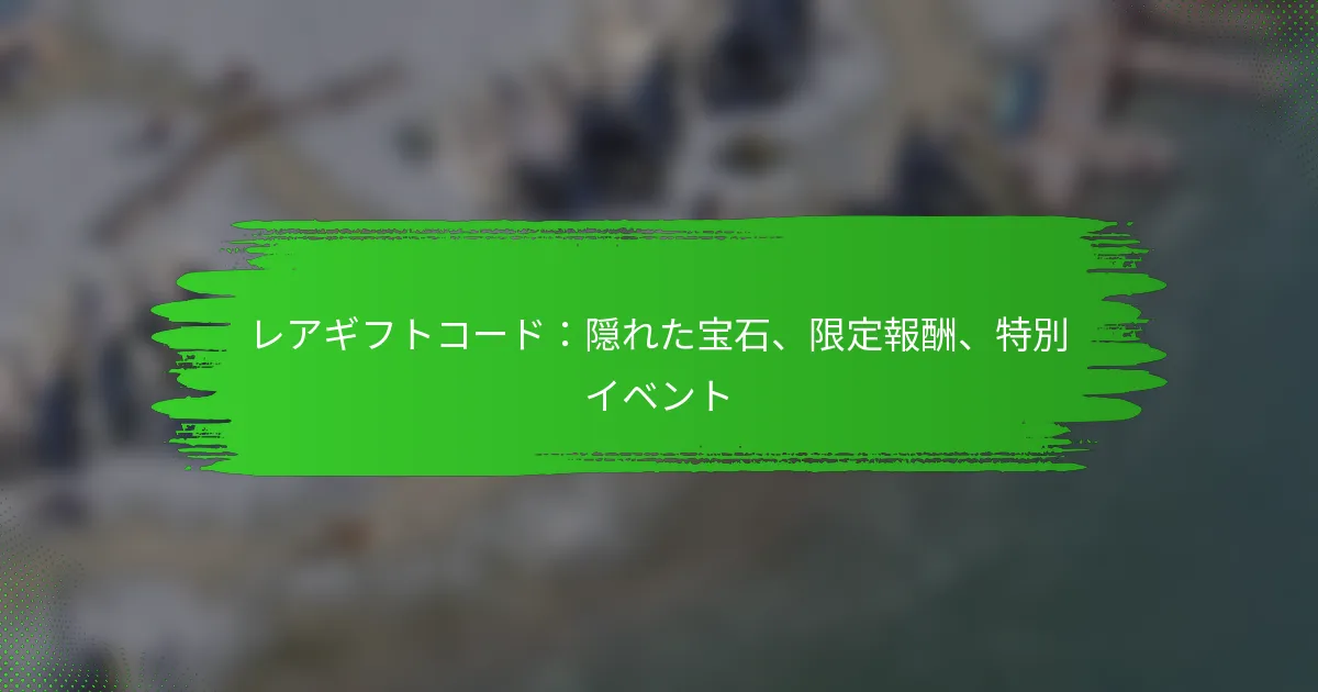 レアギフトコードは、さまざまなプラットフォーム、特にゲームやオンラインサービスで独占的な報酬をアンロックするユニークな英数字の文字列です。これらのコードは特別なアイテムやボーナスを提供するだけでなく、期間限定のイベントにも関連しており、全体的なユーザー体験を向上させます。これらのコードを戦略的に使用し管理することで、プレイヤーは報酬を最大化し、ユニークなゲーム内の特典を楽しむことができます。 レアギフトコードとは何か、どのように機能するのか? レアギフトコードは、さまざまなプラットフォーム、主にゲームやオンラインサービスで独占的な報酬をアンロックするユニークな英数字の文字列です。これらのコードはプロモーションツールとして機能し、ユーザーに特別なアイテム、ボーナス、または期間限定のイベントへのアクセスを提供します。 レアギフトコードの定義 レアギフトコードは、報酬と引き換えに使用できる特別に生成されたコードです。これらは通常、開発者や企業によって発行され、エンゲージメントを促進し、ユーザー体験を向上させるために使用されます。ユーザーは通常、ウェブサイトやアプリケーションの指定されたセクションにこれらのコードを入力して特典を受け取ります。 これらのコードのユニークさは、入手可能性が限られていることを意味し、より魅力的になります。一部のコードは特定のイベント、プロモーション、またはマイルストーンに関連している場合があり、その希少性と魅力を高めています。 ギフトコードによってアンロックされる報酬の種類 ギフトコードは、プラットフォーム全体でユーザー体験を向上させるさまざまな報酬をアンロックできます。一般的な報酬の種類には以下が含まれます: ゲーム内通貨またはクレジット 独占的なアイテムまたはスキン 特別なイベントまたは機能へのアクセス 今後の購入に対する割引 これらの報酬は、ゲームプレイやユーザーインタラクションを大幅に改善することができるため、非常に求められています。たとえば、あるコードは、通常はかなりの時間をかけて獲得する必要があるレアアイテムを購入するのに十分なゲーム内通貨を提供することがあります。 ギフトコードの配布方法 ギフトコードは、ソーシャルメディア、ニュースレター、プロモーションイベントなど、さまざまなチャネルを通じて配布されます。企業は、特別な機会、たとえば記念日やゲームの発売時にコードを共有して、ユーザーの参加を促進することがよくあります。 さらに、一部のコードはコンテンツ内に隠されている場合があり、ユーザーがプラットフォームと関わることでそれらを発見する必要があります。この方法は、探索を促進するだけでなく、ユーザー間のコミュニティ意識を育むことにもつながります。 ギフトコードの有効期限と有効性 ほとんどのギフトコードには有効期限があり、数日から数ヶ月の範囲で設定されています。ユーザーは、コードを期限内に引き換えるために、これらの日付を把握しておく必要があります。期限切れのコードは通常無効になり、使用できなくなります。 さらに、一部のコードには使用制限があり、特定のユーザー数によってのみ引き換え可能です。各コードに関連する条件を確認することは、特典を最大化するために重要です。 ギフトコードを引き換える一般的なプラットフォーム ギフトコードは、主にゲームやデジタルサービスのさまざまなプラットフォームで引き換えることができます。一般的なプラットフォームには以下が含まれます: モバイルゲーム(iOSおよびAndroid) PCゲームプラットフォーム(Steam、Epic Games Store)