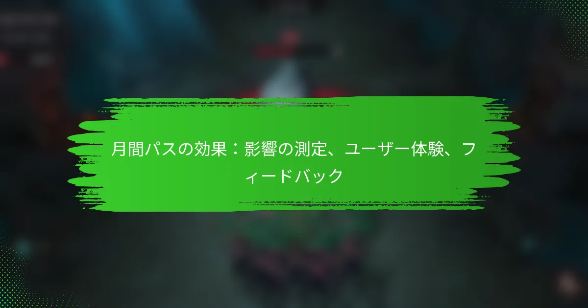 月間パスの効果を評価するには、コスト削減、利用率、ユーザー満足度などの主要な指標を分析する必要があります。ユーザーの体験やフィードバックを理解することは重要であり、これらの洞察は、異なる人口統計が月間パスの価値や利便性を他のチケットオプションと比較してどのように認識しているかを明らかにします。これらの要素を測定することで、サービス提供者はユーザーのニーズにより適した提供を行い、全体的な満足度を向上させることができます。 月間パスの効果を測定するための主要な指標は何ですか? 月間パスの効果を評価するための主要な指標には、単回利用チケットと比較したコスト削減、利用率、ユーザー満足度、継続率、サービス提供者への全体的な収益影響が含まれます。これらの指標は、月間パスがユーザーのニーズをどれだけ満たし、ビジネス目標に貢献しているかを包括的に示します。 単回利用チケットと比較したコスト削減 コスト削減は、ユーザーが単回利用チケットよりも月間パスを選ぶ主な理由です。通常、月間パスは個別のチケットを購入するよりも20-50%の節約を提供でき、特に頻繁に利用するユーザーにとっては特に有利です。例えば、単回チケットが$3の場合、約$70の月間パスは、毎日サービスを利用する人にとってより経済的な選択肢となるでしょう。 コスト削減を評価する際には、利用頻度を考慮する必要があります。週に特定の回数以上旅行するユーザーは、月間パスがすぐに元を取ることが多いと感じることがよくあります。これにより、サービス提供者はユーザーのパターンを分析し、価格戦略を最適化することが重要です。 利用率と利用頻度 利用率は、ユーザーが月間パスをどれだけ頻繁に利用しているかを示します。高い利用率は、そのパスが魅力的であり、ユーザーのニーズを満たしていることを示唆します。例えば、月間パスが月に少なくとも15回使用される場合、それは強いエンゲージメントと価値を示しています。 利用頻度を追跡することで、時間の経過に伴うトレンドを明らかにすることもできます。ユーザーが一貫してパスを利用している場合、それは満足度と忠誠心を示すかもしれません。逆に、利用の減少は、サービス提供や価格に調整が必要であることを示す可能性があります。 ユーザー満足度スコアとフィードバック ユーザー満足度は、月間パスの効果を理解するために重要です。調査では、利便性、価格、サービスの質などの要因に応じて、満足度スコアが70%から90%の範囲であることがよく示されます。ポジティブなフィードバックは、通常、使いやすさやコスト効果を強調します。 ユーザーインタビューやフォーカスグループを通じて質的フィードバックを収集することで、より深い洞察を得ることができます。ユーザーは、モバイルアプリの統合や柔軟な支払いオプションなど、追加機能に対する好みを表現することがあり、これにより月間パスに対する体験や満足度が向上します。 継続率と更新統計 継続率は、初回購入後にどれだけのユーザーが月間パスを更新し続けるかを測定します。高い継続率は、通常60%以上で、ユーザーがそのパスに価値を見出し、サービスを引き続き利用する可能性が高いことを示しています。この指標は、長期的なビジネスの持続可能性にとって重要です。 更新統計は、季節的なトレンドも明らかにすることができます。例えば、特定の月に更新が急増する場合、サービス提供者はこれらのパターンを活用するためにマーケティング活動を調整し、低迷期に更新を促進するためのプロモーションを提供することができます。 サービス提供者への全体的な収益への影響 月間パスの全体的な収益への影響は、サービス提供者にとって重要です。月間パスは予測可能な収益源を生み出し、より良い財務計画を可能にします。特に公共交通機関やフィットネスサービスなどの分野では、総収益のかなりの部分に寄与することがよくあります。 月間パスから得られる収益を単回利用チケットと比較することで、企業は財務状況を理解するのに役立ちます。月間パスが収益の大部分を占める場合、より多くのユーザーを引き付けるためにマーケティングやサービスの強化にさらなる投資を正当化するかもしれません。 ユーザーの体験は月間パスの認識にどのように影響しますか? ユーザーの体験は、個人が月間パスの価値と効果をどのように認識するかに大きな影響を与えます。ユーザーからのフィードバックは、満足度、課題、全体的な影響を強調し、これらは人口統計やサービスの種類によって異なる場合があります。 一般的なユーザーの証言とフィードバック 多くのユーザーは、特に単回利用オプションと比較してコスト削減を評価し、月間パスに満足していると表現しています。例えば、あるユーザーは「月間パスに切り替えたことで通勤費が30%以上節約できました」と述べました。別のユーザーは「無制